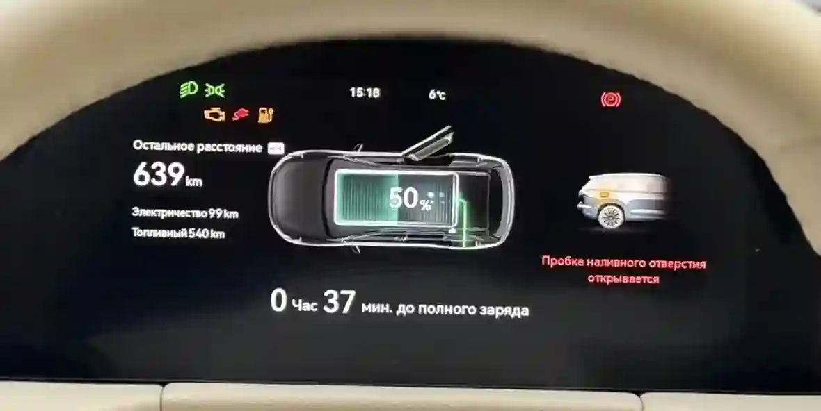 Этот гибрид поддерживает быструю зарядку до 75 кВт. Но я тестировал на зарядке на ВДНХ с мощностью 55 кВт. С 20% до 80% заряжалась машина примерно час с лишним, после 80% скорость падает в 2-3 раза для сохранения батареи.