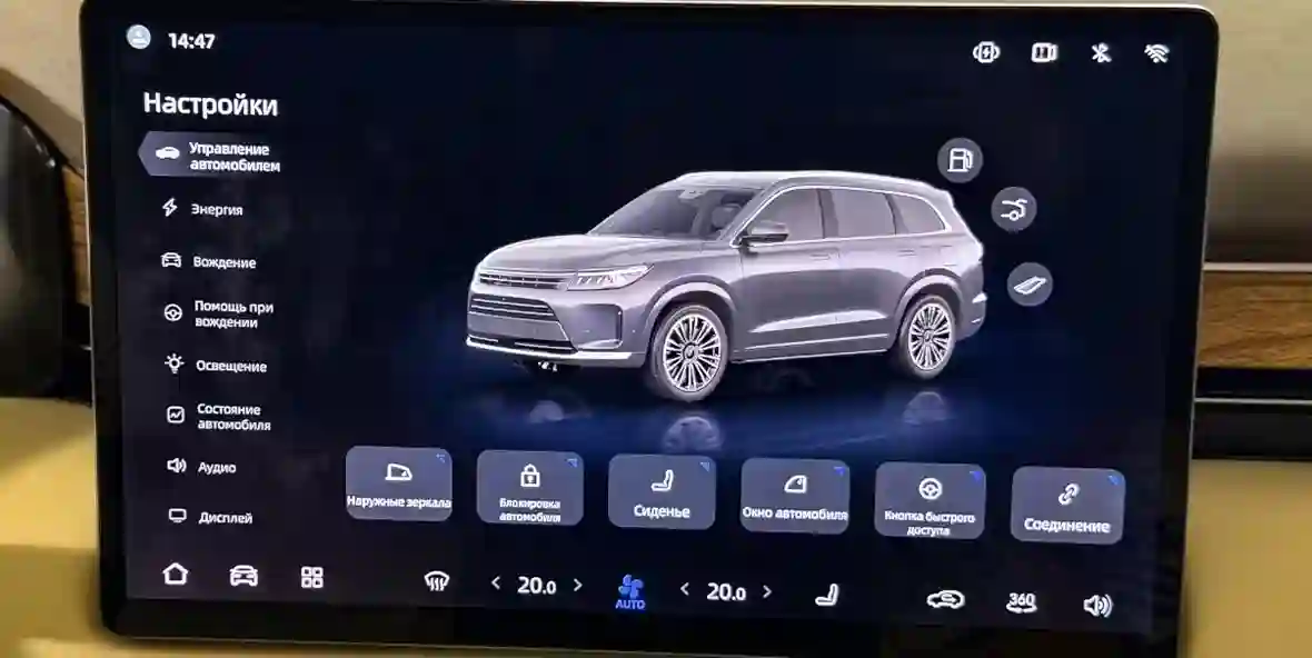 В операционке предусмотрено управление всеми элементами авто: от климата и дефлекторов вентиляции до режимов движения и настроек безопасности.